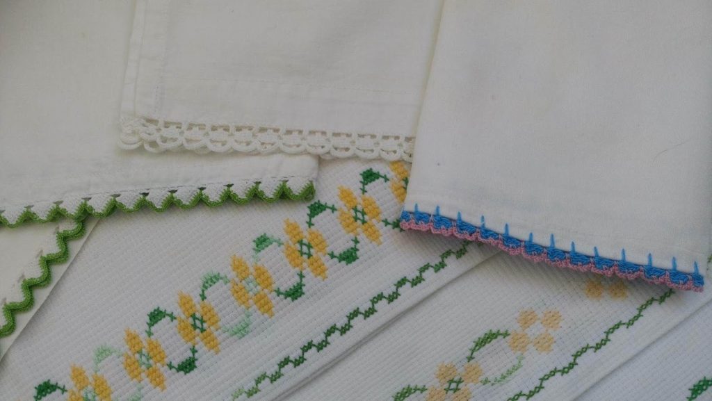 Fakat bugün 50-60 yıl önce işlemiş olduğu kanaviçeleri ve nakış örneklerini paylaşmak istiyorum. Resimde gördüğünüz modelleri tam 60 yıl kadar önce işlemiş. Hiç bir örtü doğru düzgün zarar görmemiş bile. Bazı yerlerindeki sarı lekeler dışında sapasağlam sandıktan çıktı. O gün bana bu örtüleri nasıl ve ne zaman işlediğini anlatırken çok mutlu oldum. Sanki zamanla yolculuktaydım.