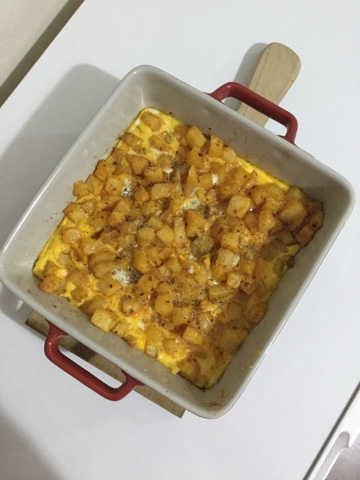 Şimdi gelelim kızartma olarak tüketmeye alışık olduğumuz patatesli yumurtayı fırında pişirmeye.